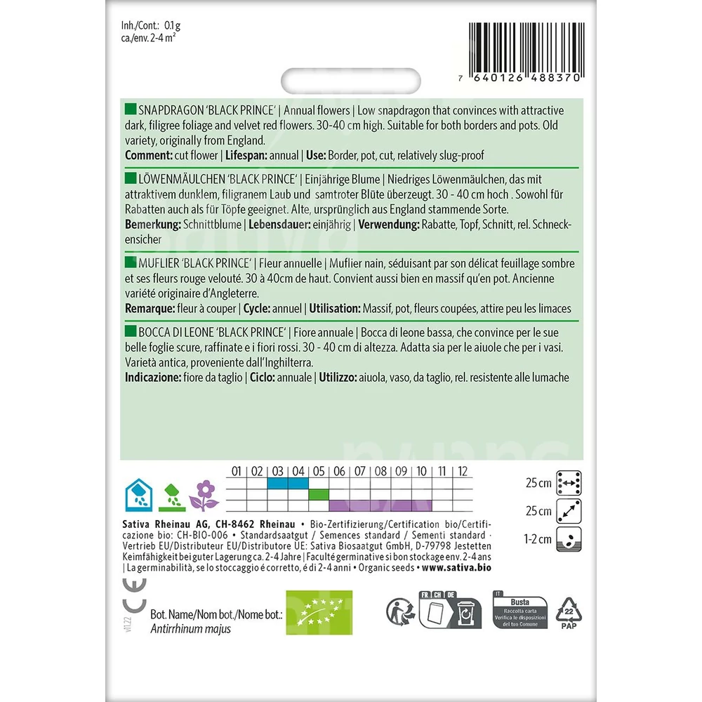 Az Antirrhinum majus 'Black Prince' egy állandó virágzású és remek kontrasztot adó növény, amely szokatlan mély merlot-fekete színt kölcsönöz a szegélyeknek és csokroknak. Felálló formája kellemes függőleges elemet ad. Ennek a kompakt tátika sötét szára és lombozata még nagyobb kontrasztot kölcsönöz a vágottkerteknek, a vegyes szegélyeknek és a konténeres virágzatoknak.