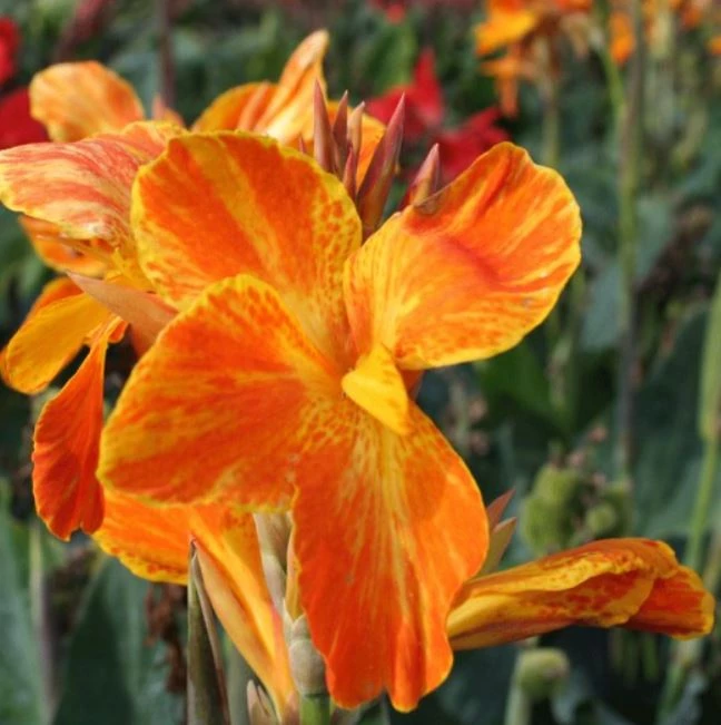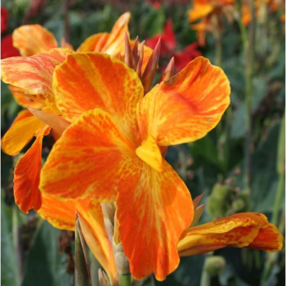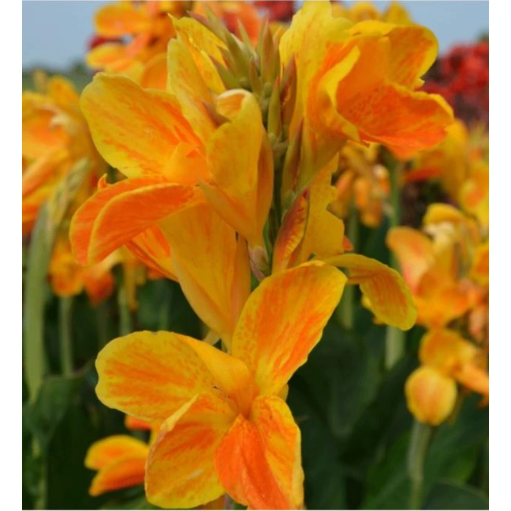 A levelek szélesek, laposak, fényes textúrájúak. Hosszú, keskeny tekercsekben jelennek meg, majd fokozatosan kibontakoznak. A virágokat fürtökben vagy füzérvirágzatokban gyűjtik. 3 csészelevélből és 3 sziromlevélből állnak, amelyek nem feltűnőek (kicsik és extravagáns porzók alatt rejtőznek). A szirmok erősen módosult porzók vagy staminodiák. A virágok az erős, függőleges szárak tetején jelennek meg, amelyek a levelek felett állnak. Illatmentesek. Hideg vidékeken a kannákat a dáliákhoz hasonlóan termesztik.Ez a fajta napos, védett helyeken, tápanyagban gazdag, vízelvezetésű talajban fejlődik jól. Bőséges öntözést igényel. A növény egyedül vagy csoportosan ültethető. Alkalmas parti ültetésre. Az elhalványult virágzatok időben történő eltávolítása hozzájárul a virágzás folytatásához. Rizómák szétválasztásával szaporítható. Mérsékelt égövben a kanna növényeket télire ki kell ásni. Télen hűvös, száraz garázsban vagy pincében tároljuk, majd tavasszal (az utolsó fagy után) nyílt terepen újra kiültetjük. A növény magassága körülbelül 200 cm, szélessége 50 cm. Figyelem!
