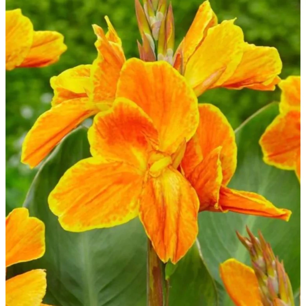 Újdonság! Ez a fajta zöld levelekkel, sárga szegéllyel és narancssárga virágokkal büszkélkedhet. A maga varázsa! A virágok nyár közepétől ősz közepéig nyílnak.