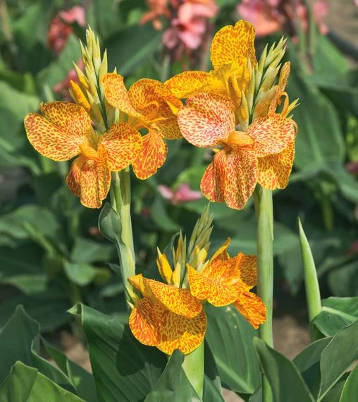 A Canna En Avant egy különösen látványos, nagy méretű dísznövény, amely élénk narancs-piros virágzatával a kert igazi fókuszpontja lehet. Erőteljes növekedésű, napfénykedvelő fajta, amely akár 120–150 cm magasra is megnő. Ideális választás szoliter növényként vagy háttérnövényként virágágyásokban. Jó víz- és tápanyagellátás mellett hosszú ideig virágzik, a nyár közepétől egészen az első fagyokig.