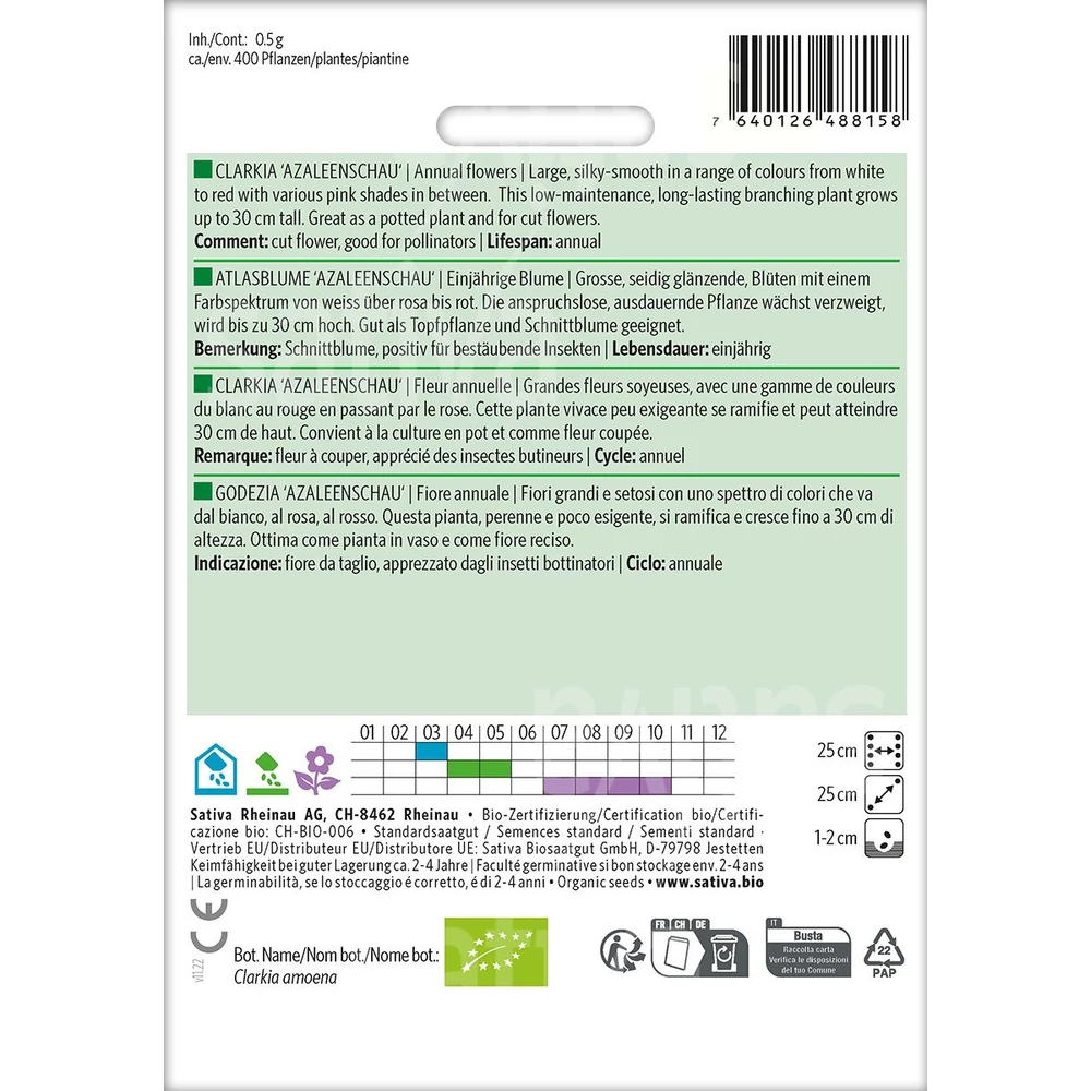 A virága fodros, kreppszerű szirmokkal rendelkezik. A Clarkia virágainak gondozása gyerekjáték, és ha egyszer elültettük őket a kertben, nincs más dolgunk, mint gyönyörködni bennük.