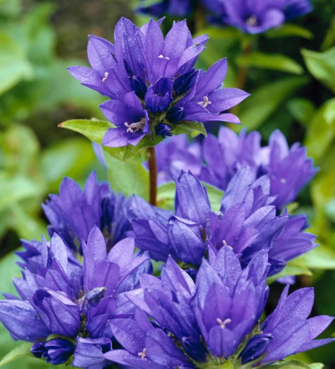 - Campanula glomerata 'Blue': Egy kompakt, törpe változat, amely körülbelül 30-40 cm magasra nő, így ideális választás konténerekbe vagy az ágyások elülső részére. Élénk kék virágai késő tavasztól kora nyárig nyílnak, és vonzzák a beporzókat, például a kolibriket és a pillangókat.