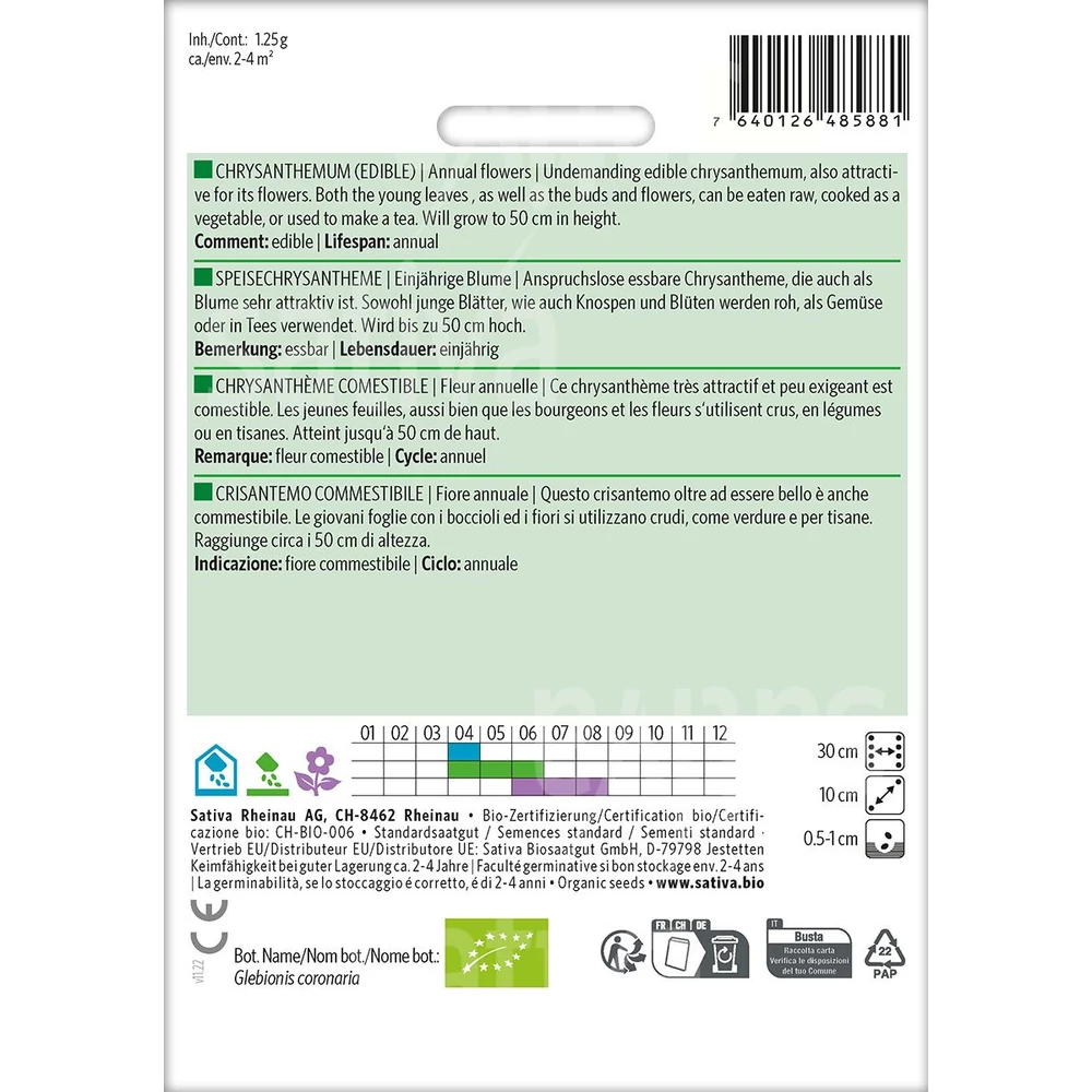 Igénytelen ehető krizantém, amely virágai miatt is vonzó. Mind a fiatal levelek, mind a rügyek és a virágok nyersen fogyaszthatók, zöldségként főzhetők, vagy teát is készíthetnek belőlük.