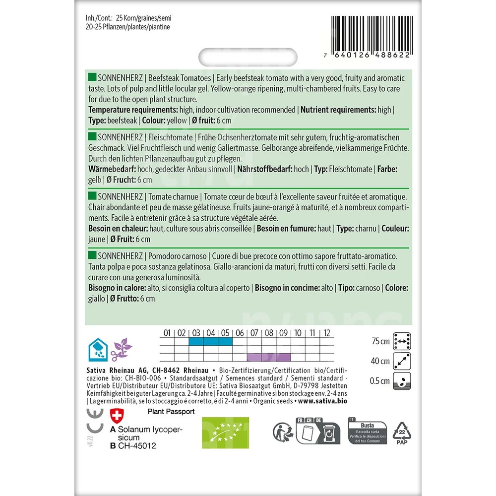 | A sorok közötti magtávolság | 75 cm |