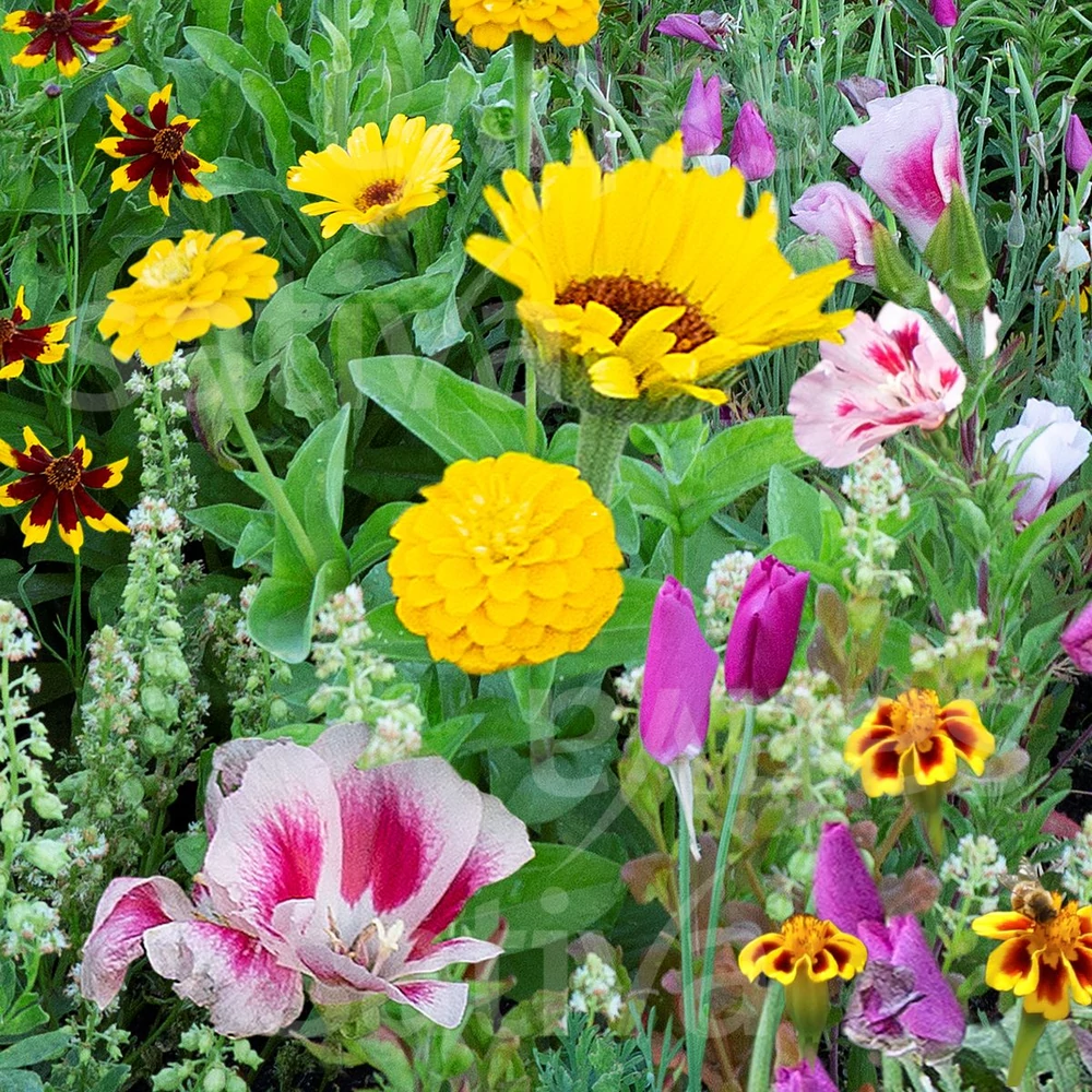 Harmonikus virágszín-keverék régi és ritka ProSpecieRara fajtákkal, vidám sárga és rózsaszín árnyalatokban.