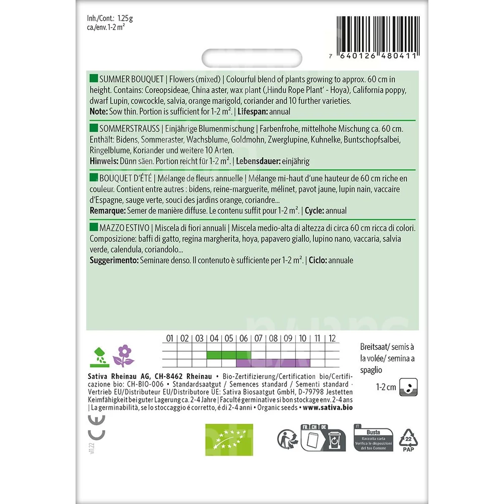 | Mag összetétele | gyöngyvirágféléket, kínai őszirózsát, viasznövényt ('Hindu Rope Plant' - Hoya), kaliforniai mákot, törpe csillagfürtöt, kakasvirágot, zsályát, narancssárga körömvirágot, koriandert és további 10 fajtát |