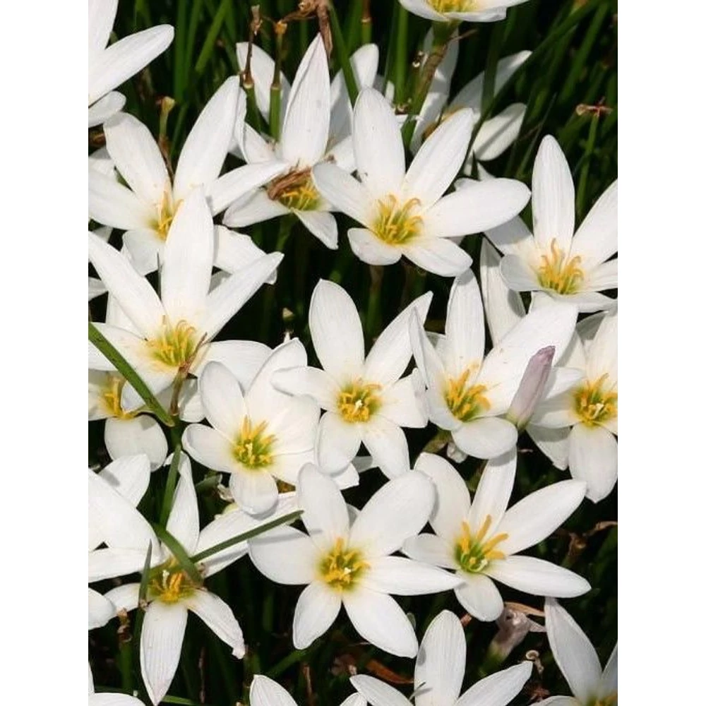 Ez a késő nyári/őszi virágzású növény gyorsan lenyűgöző fehér, csillag alakú virágokba csomósodik. A fehér esőliliomok fehér, csillag alakú virágai többször is virágoznak, ahogy a nyár átadja a helyét az ősznek. Ez a szép liliom gyorsan szaporodik, és feldobja a kertedet abban az időszakban, amikor a legtöbb virág hervad a hőségben. Teljes nyári napsütésben is jól érzik magukat, de részleges árnyékban is nagyon jól érzik magukat. Akár 30 centiméter magasra is megnőnek, és a virágok úgy tűnnek, mintha a zöld fűtengeren ülnének. Családjuk többi tagjához hasonlóan a fehér esőliliomok is néhány nappal egy nyári zápor után virágoznak. Ismert, hogy öntözés alatt is jól teljesítenek. Ez a hagymás növény könnyen termeszthető, és ha egyszer megtelepedett, évekig élvezni fogod a szépségét. Vannak, akik egy szezonra cserépbe ültetik őket, mivel szeretik a cserepes virágok élénk színeit. Gyorsan szaporodnak, ezért ha nem virágoznak szépen, ellenőrizd, hogy nem túl zsúfoltak-e. Csak körülbelül 15-25 cm magasra nőnek meg, és fűszerű lombozatuk lesz, így remekül mutatnak majd szegélyként.